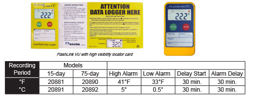 FlashLink VU 果蔬記錄儀 是專門設(shè)計(jì)用來(lái)記錄農(nóng)產(chǎn)品的貯存和運(yùn)輸溫度。記錄儀具有高/低報(bào)警設(shè)置預(yù)編程(41°F/33°F)?蛻暨\(yùn)輸農(nóng)產(chǎn)品可以使用這款一次性數(shù)據(jù)記錄儀。 它有一個(gè)大而易閱讀的液晶顯示屏,熱處理溫度記錄儀,能夠提供即時(shí)的溫度信息和統(tǒng)計(jì)數(shù)據(jù),包括行程中的溫度上下極限、溫度超標(biāo)的累積時(shí)間、最高溫度、最低溫度和平均溫度。即使是使用者不啟動(dòng)數(shù)據(jù)記錄儀,水位溫度記錄儀,其專利的影子記錄功能也能保證歷史溫度數(shù)據(jù)的獲取。 應(yīng)用:記錄溫度敏感的產(chǎn)品儲(chǔ)存和運(yùn)輸條件的理想設(shè)備。