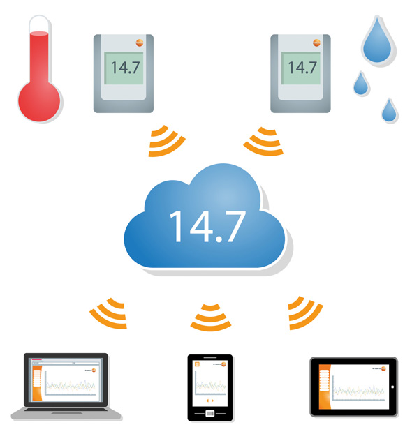 要想使用testo Saveris 2 WiFi溫濕度記錄儀 2,你需要德圖云服務(wù)器使用許可證。因為你所有的溫度和濕度測量數(shù)據(jù)都存儲在德圖云服務(wù)器上。只要通過德圖云服務(wù)器,你就可以從任何地方調(diào)用你的測量數(shù)據(jù),并且在測量數(shù)據(jù)達到臨界值時接收到警報。