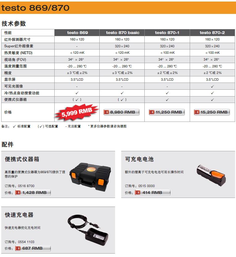 產(chǎn)品包含testo 869 紅外熱像儀, 專(zhuān)業(yè)版分析軟件, USB數(shù)據(jù)線, 電源適配器及可充電鋰電池。