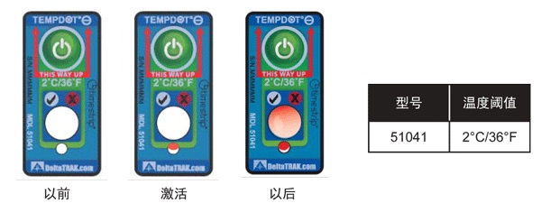TempDot™ Minus標(biāo)簽需存儲在室溫下,,并且必須在反應(yīng)溫度 以上被激活。激活是通過用手指推壓,標(biāo)簽 底部的小窗口變?yōu)榧t色或部分變紅色以指示激活,,但激活后并不需要保持紅色。當(dāng)使用了上述反應(yīng)溫度 標(biāo)簽的產(chǎn)品暴露于閾值以下的溫度,白色的大窗口變?yōu)榧t色或部分紅色,,在反應(yīng)溫度 以上將溫度標(biāo)簽用 于產(chǎn)品。如果一個產(chǎn)品暴露于閾值以下的溫度,白色的大窗口變紅色或部分紅色,,TempDot™ Minus標(biāo)簽 提供即時的視覺指示。為達到最佳效果,標(biāo)簽應(yīng)保持垂直位置,,其反應(yīng)期間,紅色箭頭須指向上方。