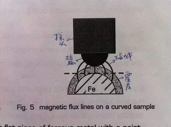 但是如果實(shí)際測量時(shí)基體的幾何形狀變了比如變成了圓柱體但涂層厚度不變。磁力線會(huì)有什么樣的變化呢?我們來看看圖Fig.5