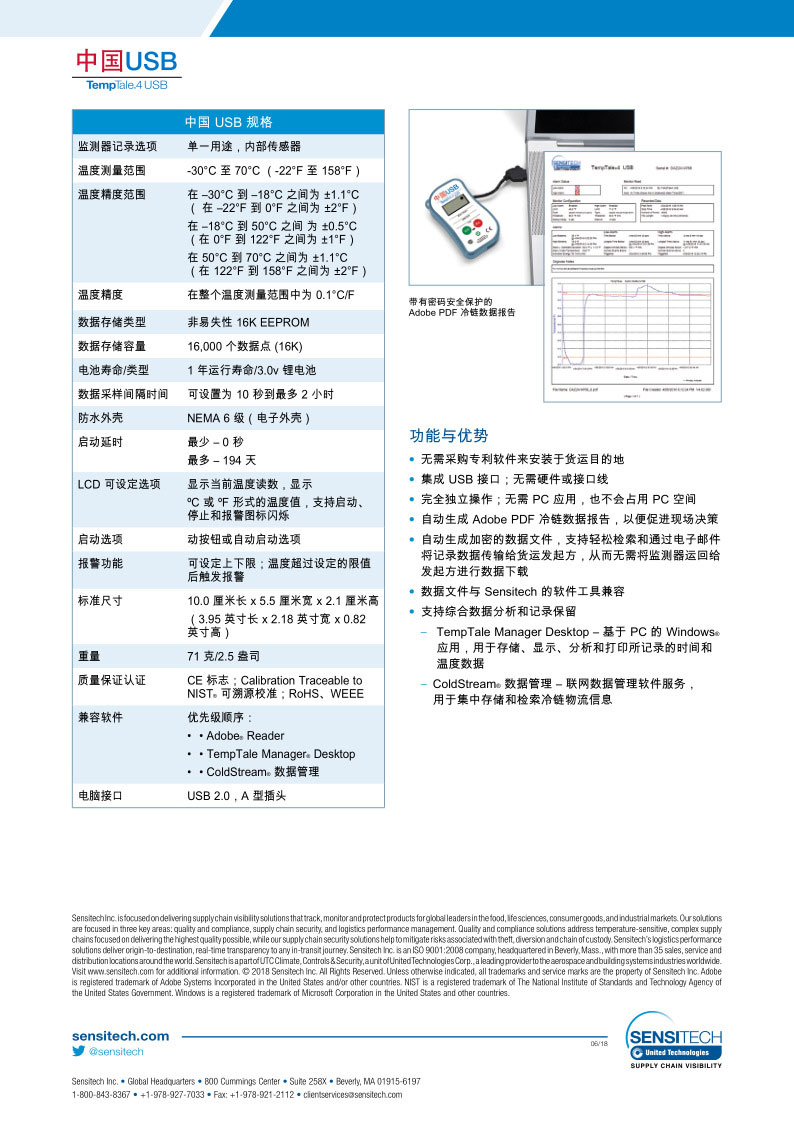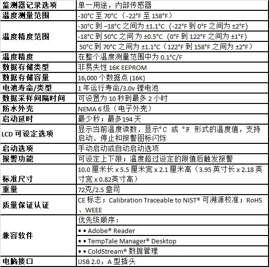 將中國 USB 監(jiān)測器插入 PC 的 USB 端口后,溫度記錄儀驅(qū)動,該監(jiān)測器將自動創(chuàng)建 Adobe®PDF 格式的冷鏈貨運信息報告。此報告可通過任何兼容 Adobe 的閱讀器程序(可免費廣泛獲。┎榭,提供完整的冷鏈行程歷史記錄,便于在現(xiàn)場快速進行貨運處理。借助電子郵件或其他文件共享功能,所有相關(guān)方均可即時輕松地查看貨運信息。 中國 USB 還會生成支持 Sensitech TempTale ManagerDesktop®(TTMD) 軟件和 Sensitech 聯(lián)網(wǎng)安全托管數(shù)據(jù)庫ColdStream®的加密數(shù)據(jù)文件(.ttv 格式)。此 .ttv 格式數(shù)據(jù)文件支持安全的數(shù)據(jù)傳輸、集合、分析和存儲,海爾智能溫度記錄儀,符合CFR 第 21 章第 11 款規(guī)定和其他嚴格質(zhì)量保證要求。